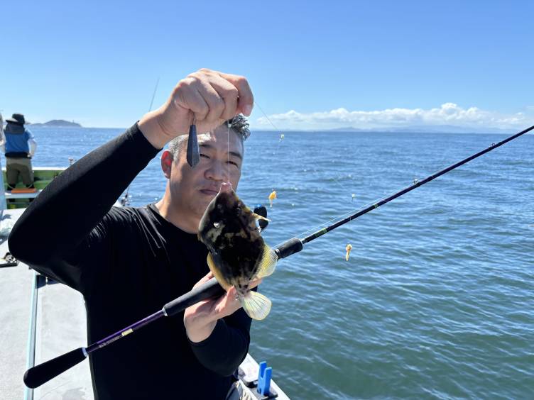 上手く誘って良型カワハギゲット!