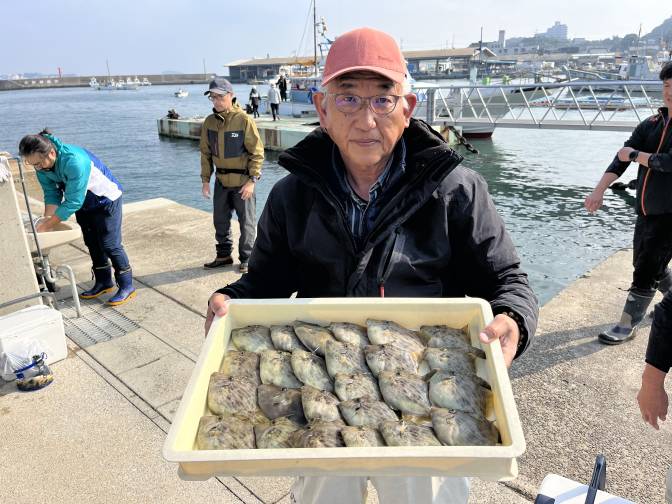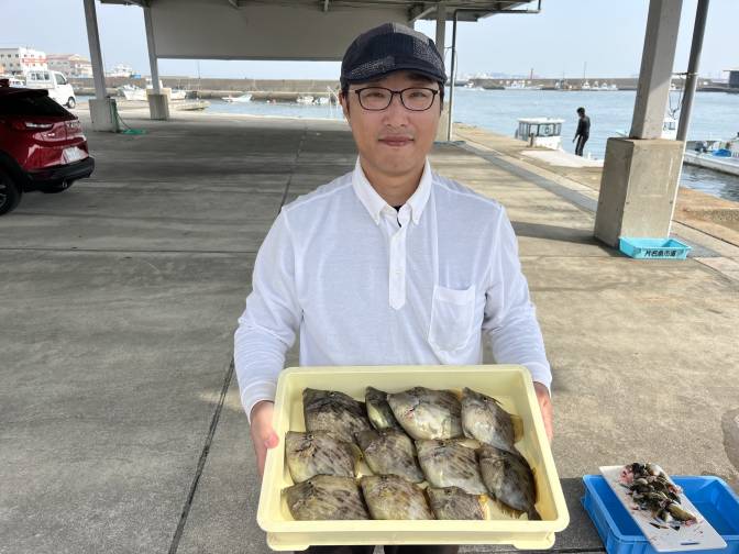 名人はアサリ餌でカワハギ釣りまくり~!