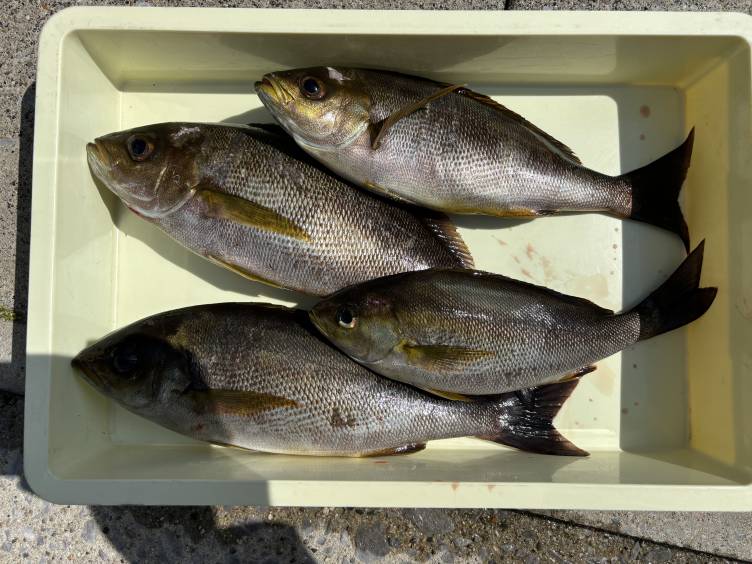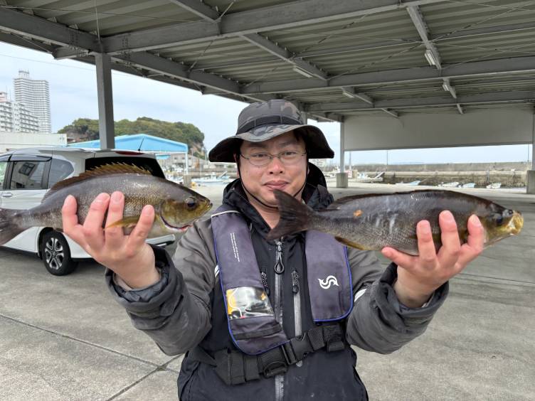 朝からぽつぽつの拾い釣りでしたが良型イサキ確保~