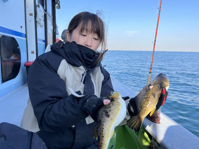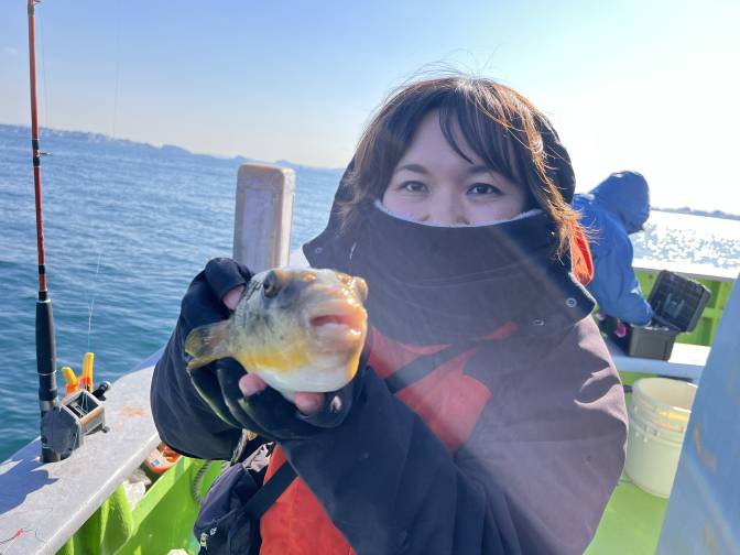 釣りガール!ヒガンフグゲットー!