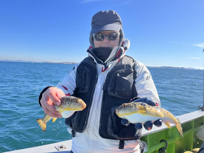 名人はヒガンフグ釣りまくり~!