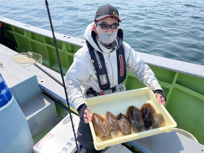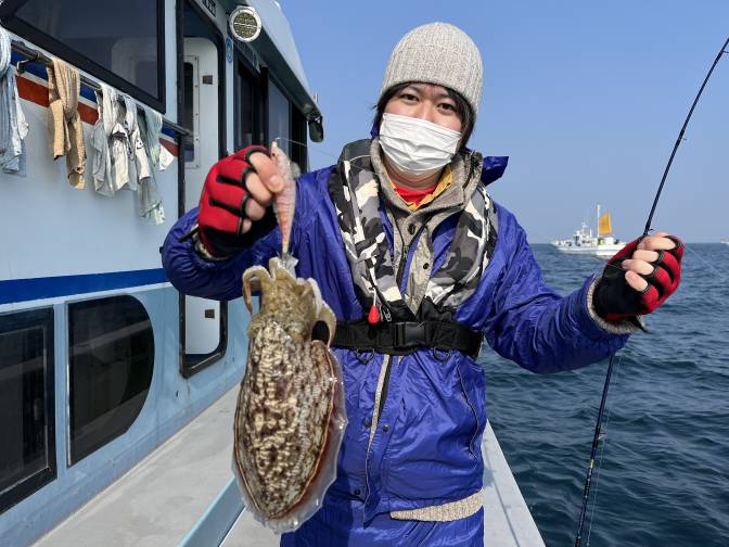良型のコウイカが釣れてますよー