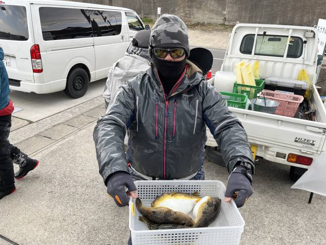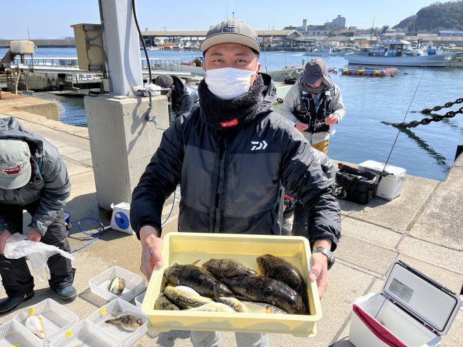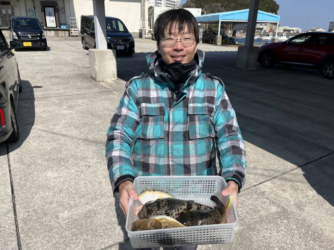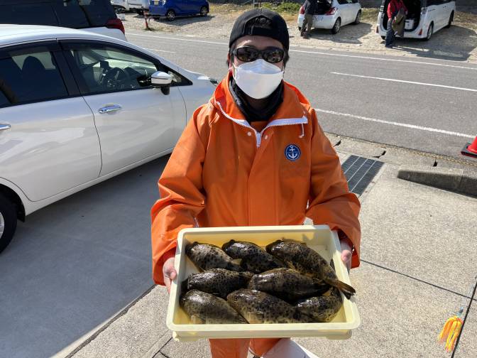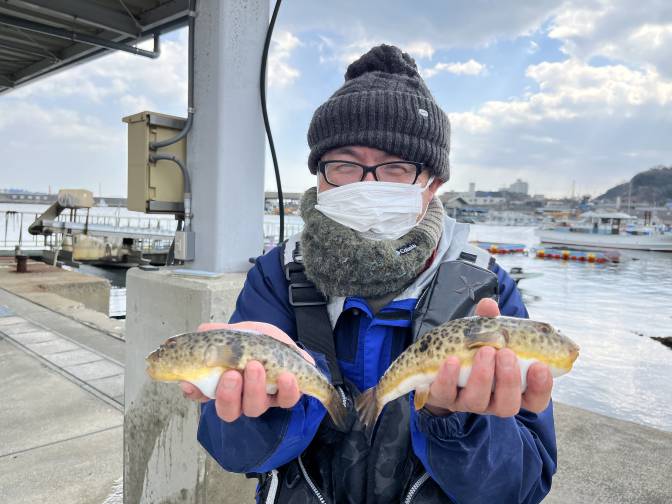 良型のヒガンフグ混じりで晩御飯釣れましたよー