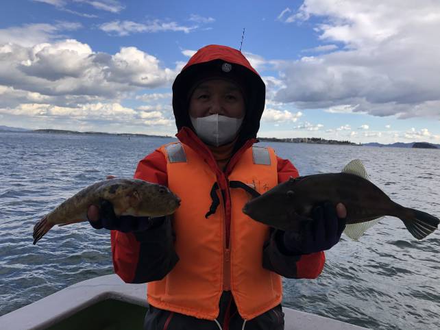カワハギフグで晩御飯確保~!