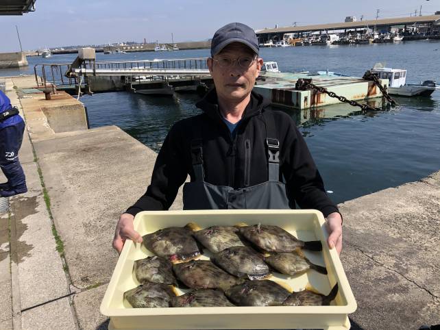 竿頭の名人はアサリ餌でカワハギゲット!