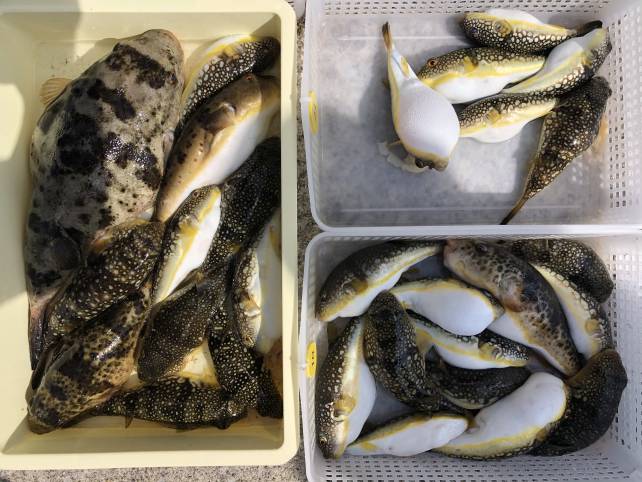 根掛りは多少ありますが良型のヒガンフグが嬉しいですね。