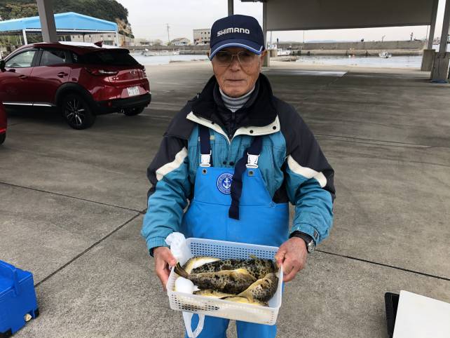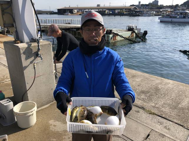 良型のヒガンフグが今日もバッチリ釣れました。