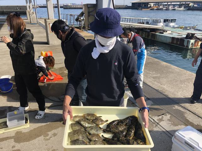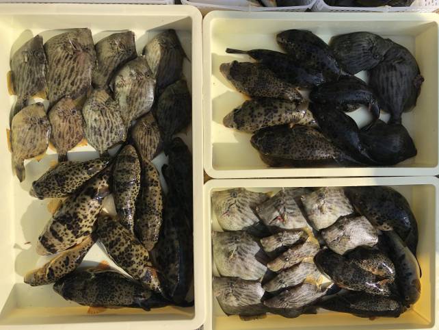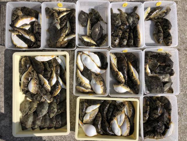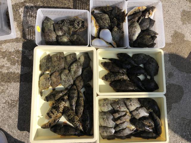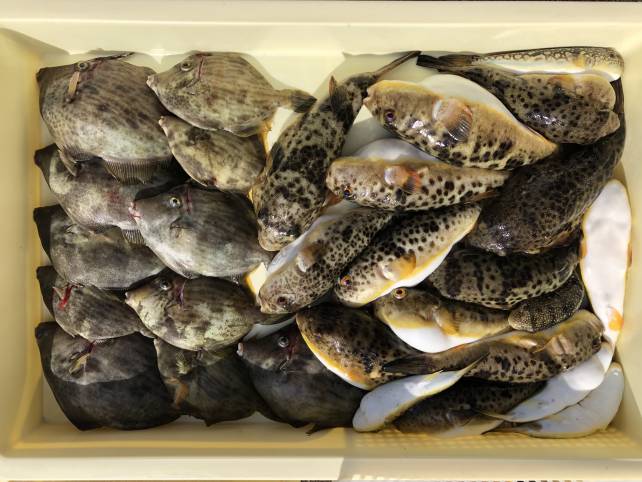 今日はエサ釣りのお客さんが多くカワハギがいい感じ~