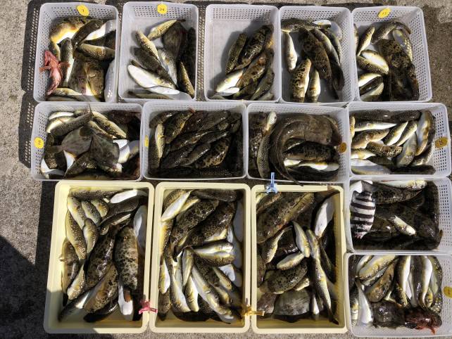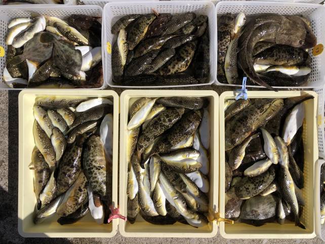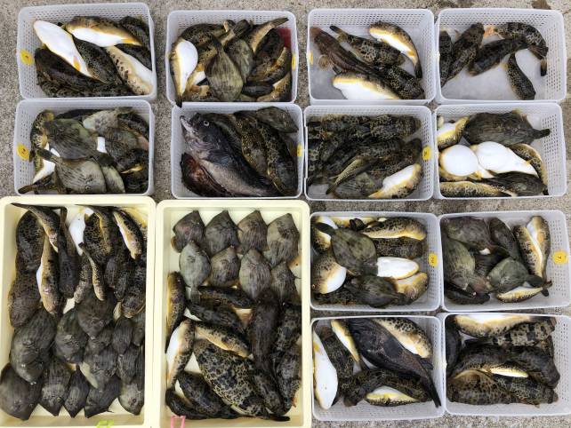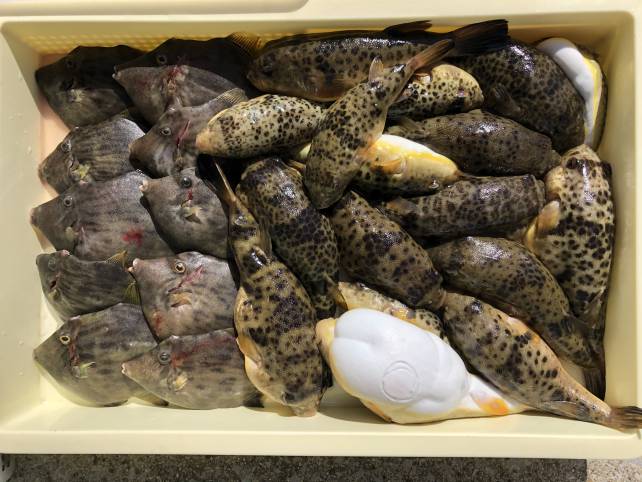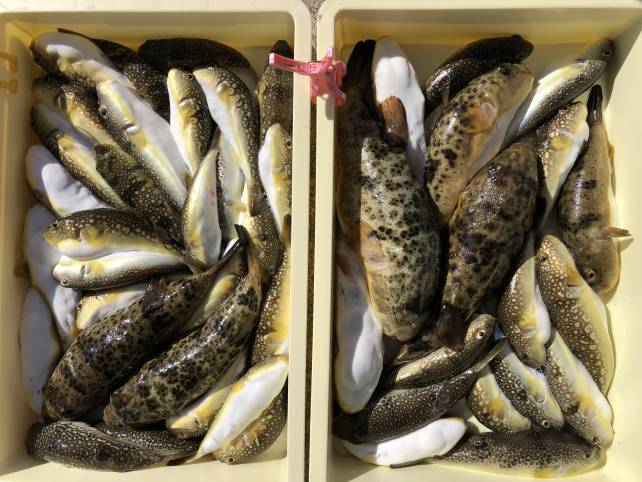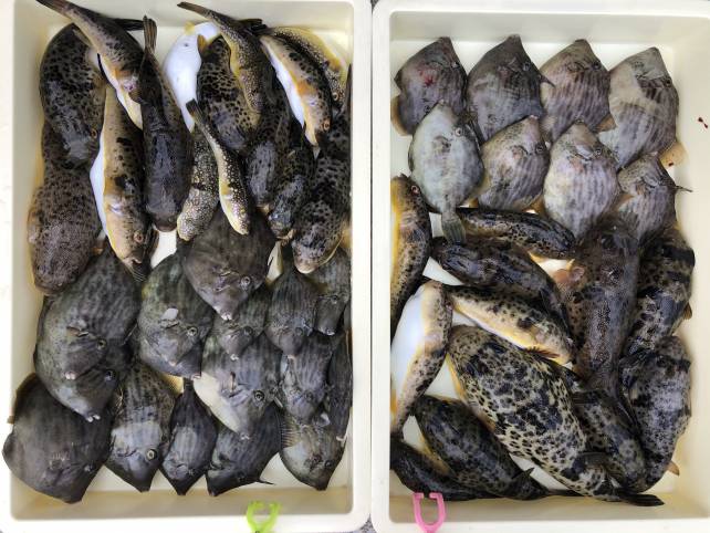 ヒガンフグにカワハギで山盛りゲットー!