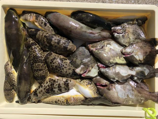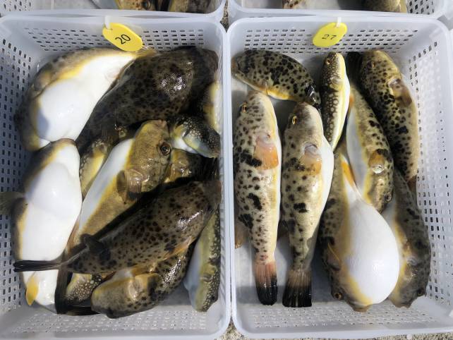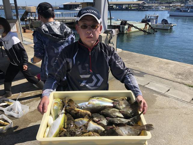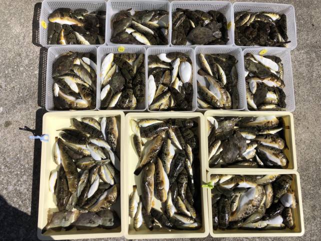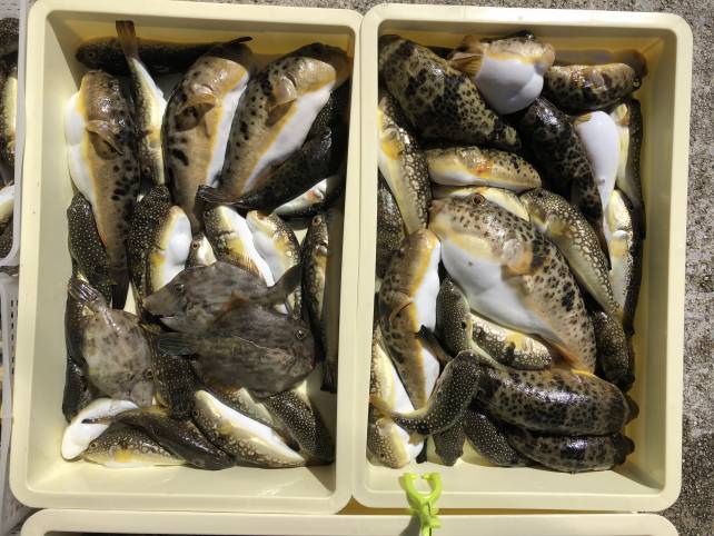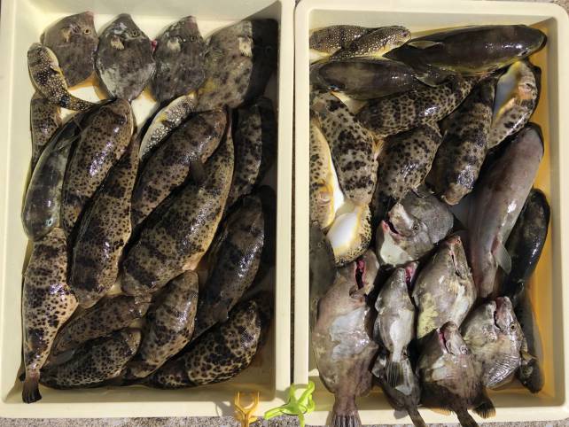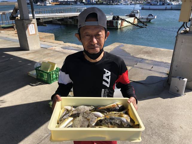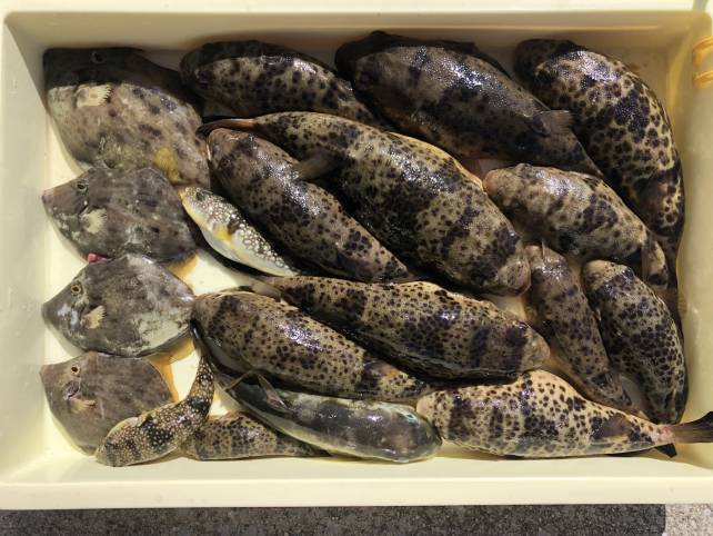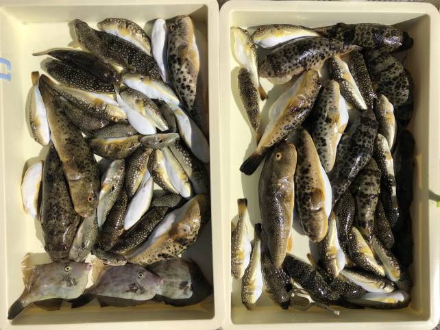 こちらも良型のヒガンフグにカワハギで山盛り!