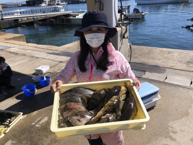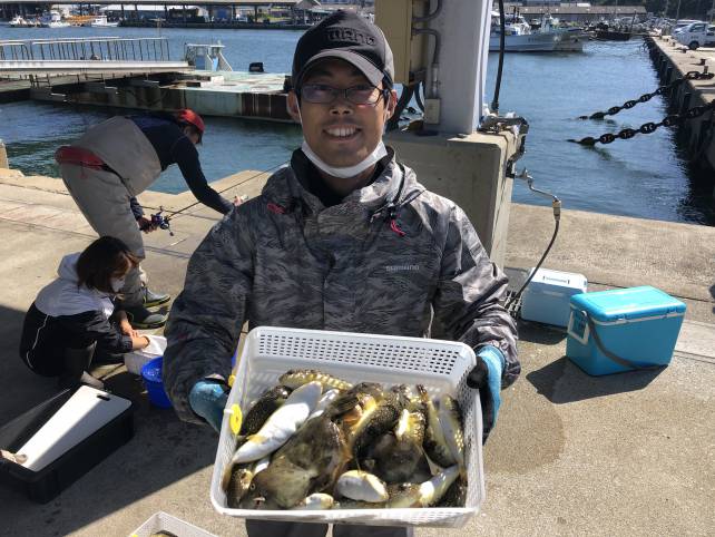 ジャンボサイズのヒガンフグにカワハギでバッチリ大漁!