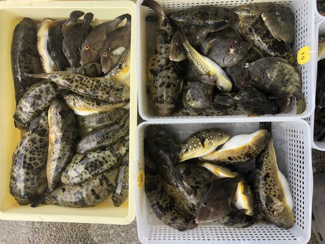 肝パンのカワハギにヒガンフグが今日もまずまず。