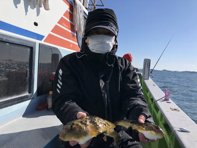 少々風ありましたがフグ釣り行ってきました。