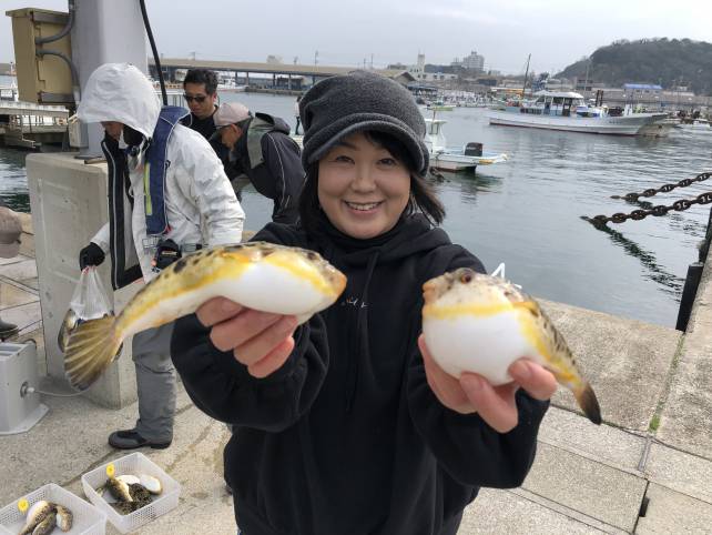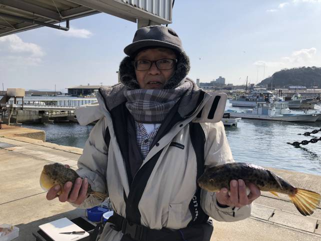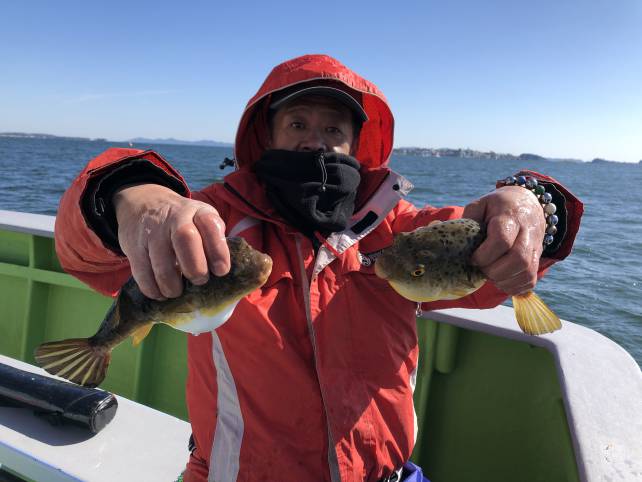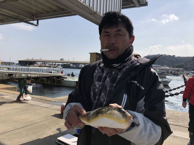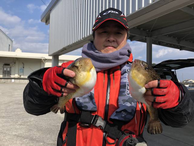 良型のヒガンフグ釣れてますよー
