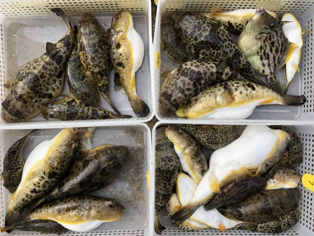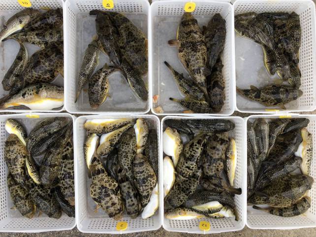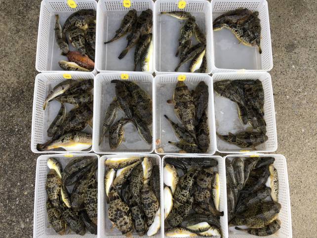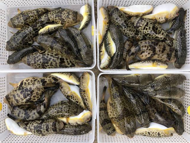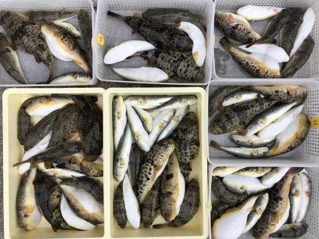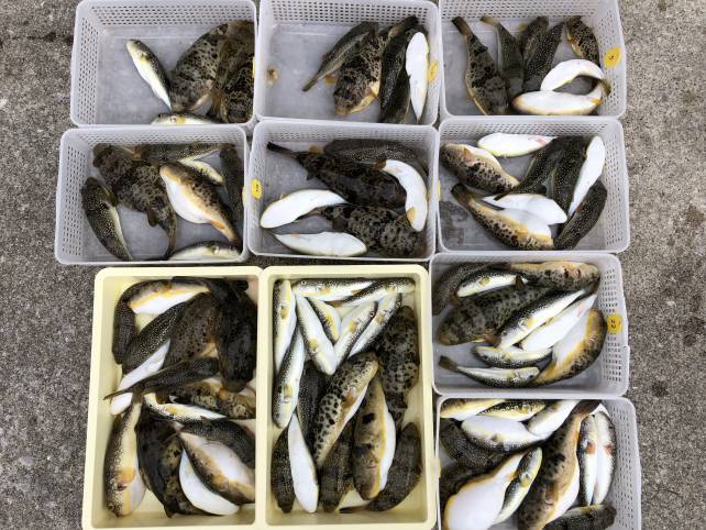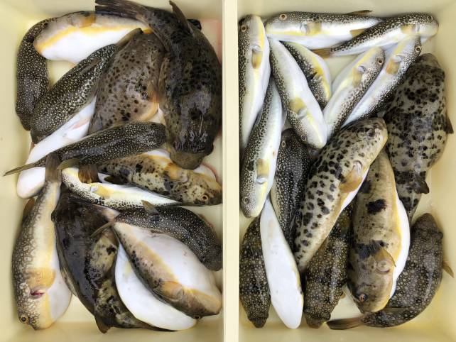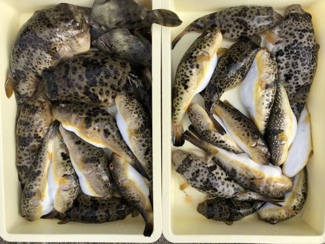 ジャンボサイズも混じりヒガンフグ中心でボリューム満点