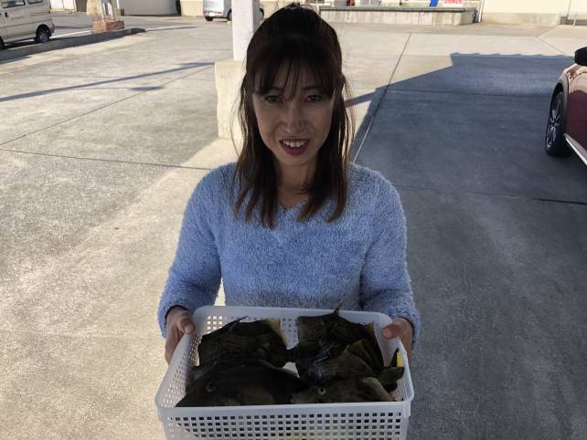 女性アングラー!カワハギ28枚ゲットー!