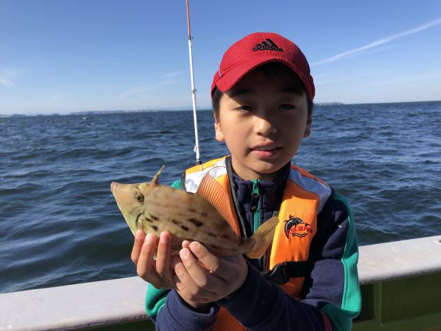 少年アングラーも良型カワハギ!