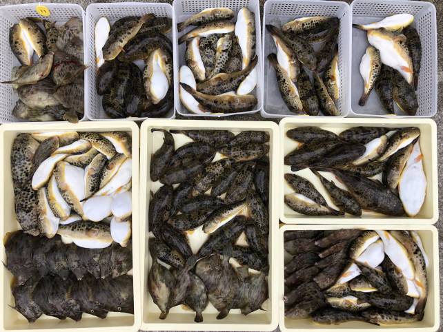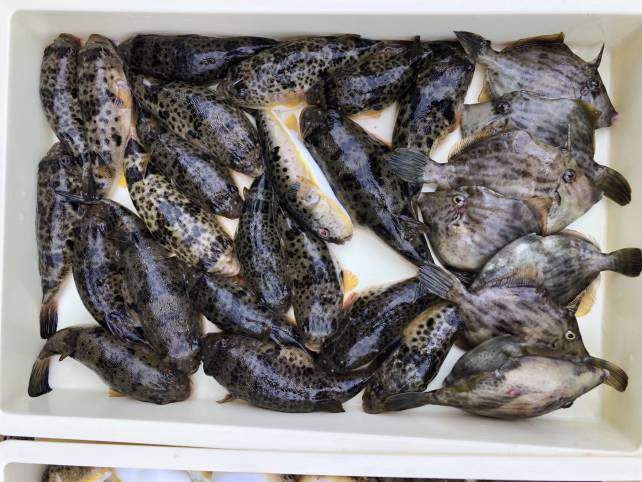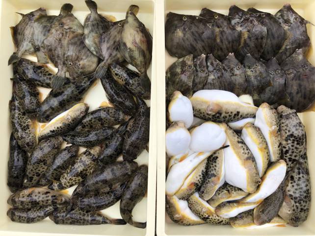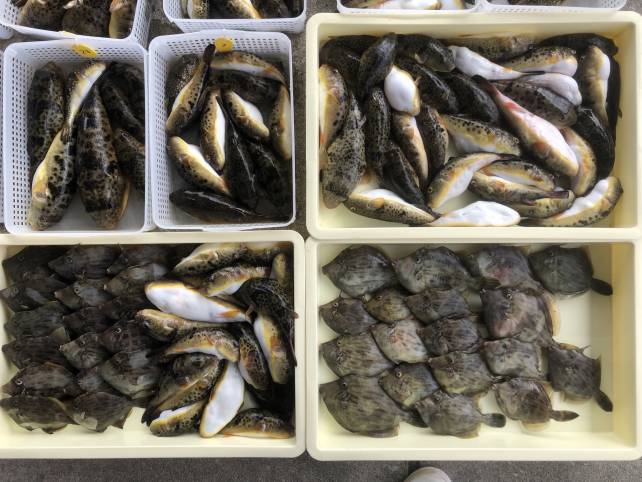 カワハギフグで山盛り!