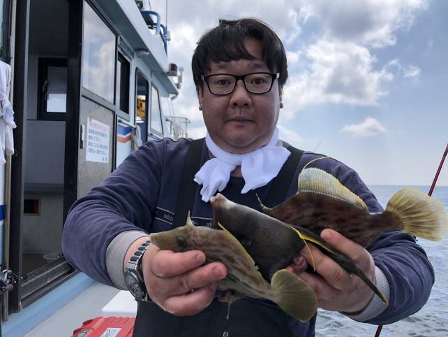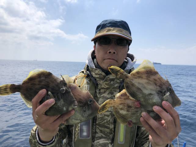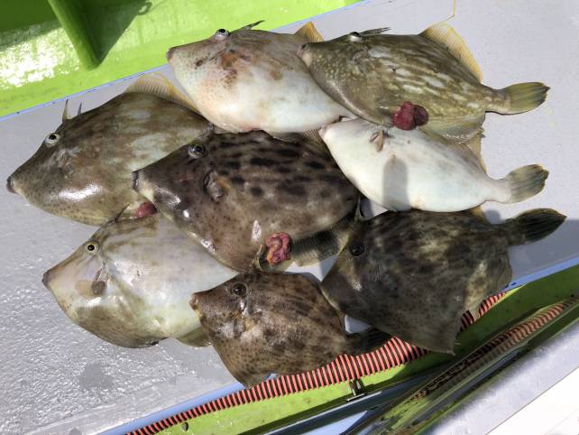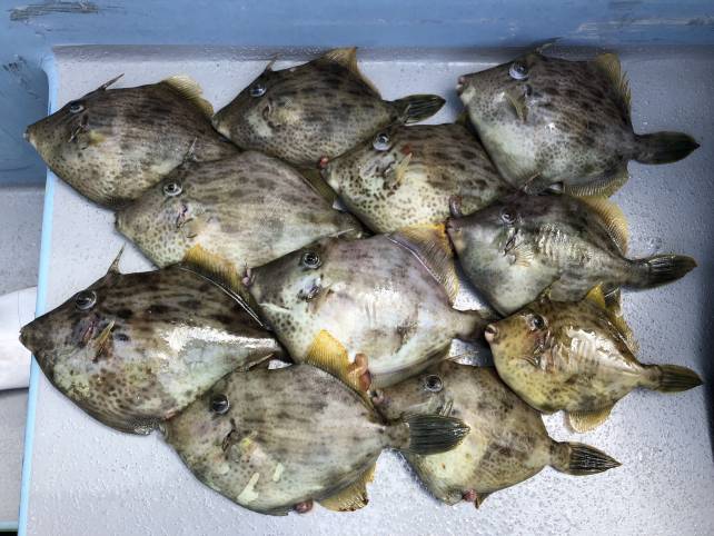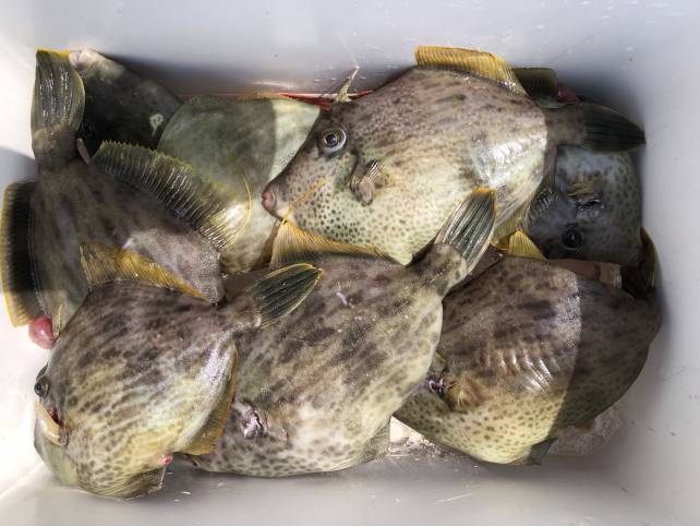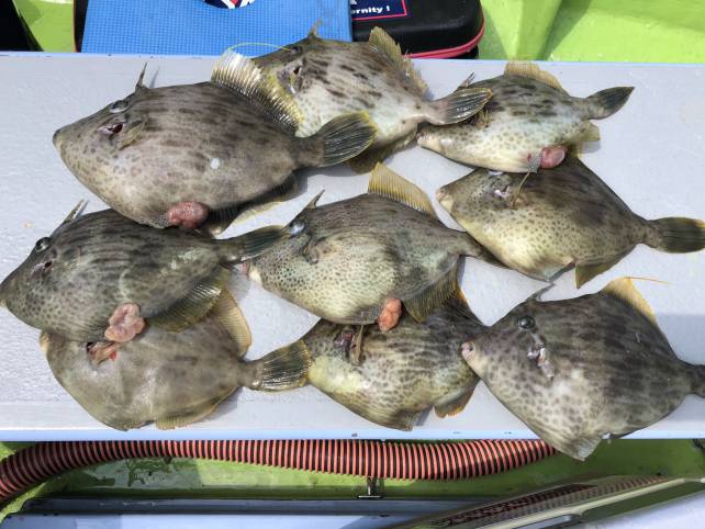 良型のカワハギがいい感じに釣れましたよー