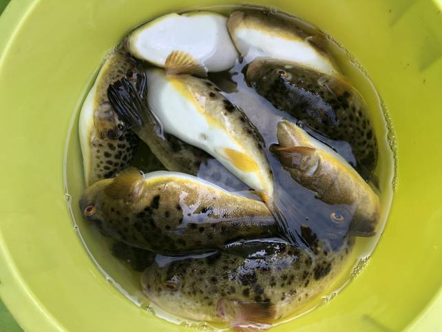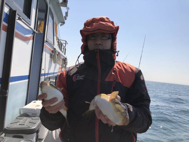 こちらも良型のヒガンフグゲット!
