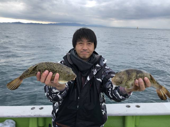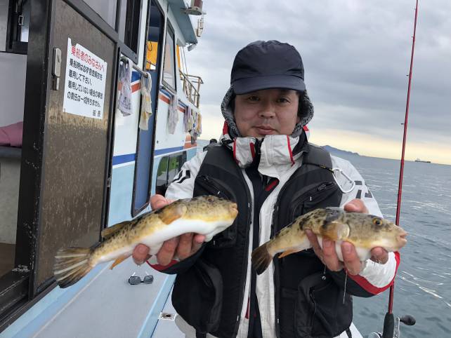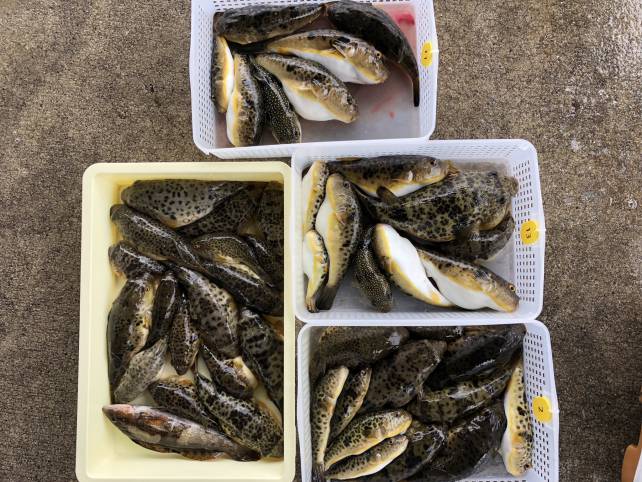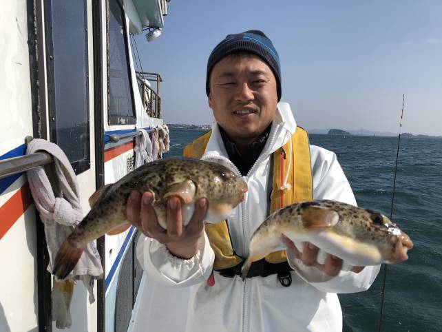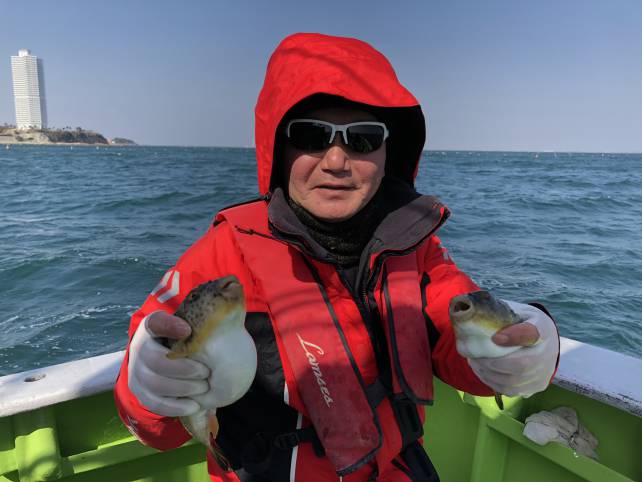 皆さんジャンボサイズのヒガンフグがバッチリ釣れました!