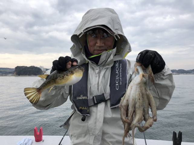 ヒガンフグに嬉しいタコも確保!
