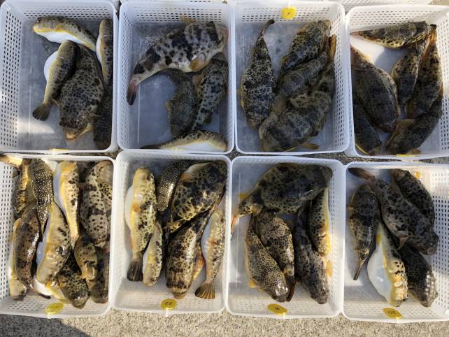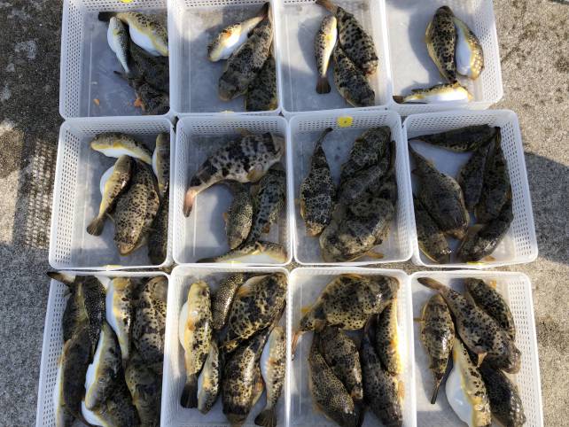 ナイスサイズのヒガンフグ混じりでボチボチとあがりました