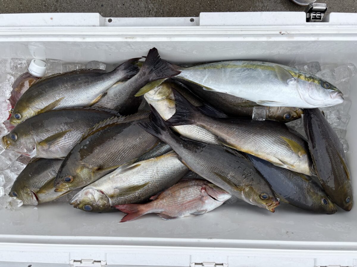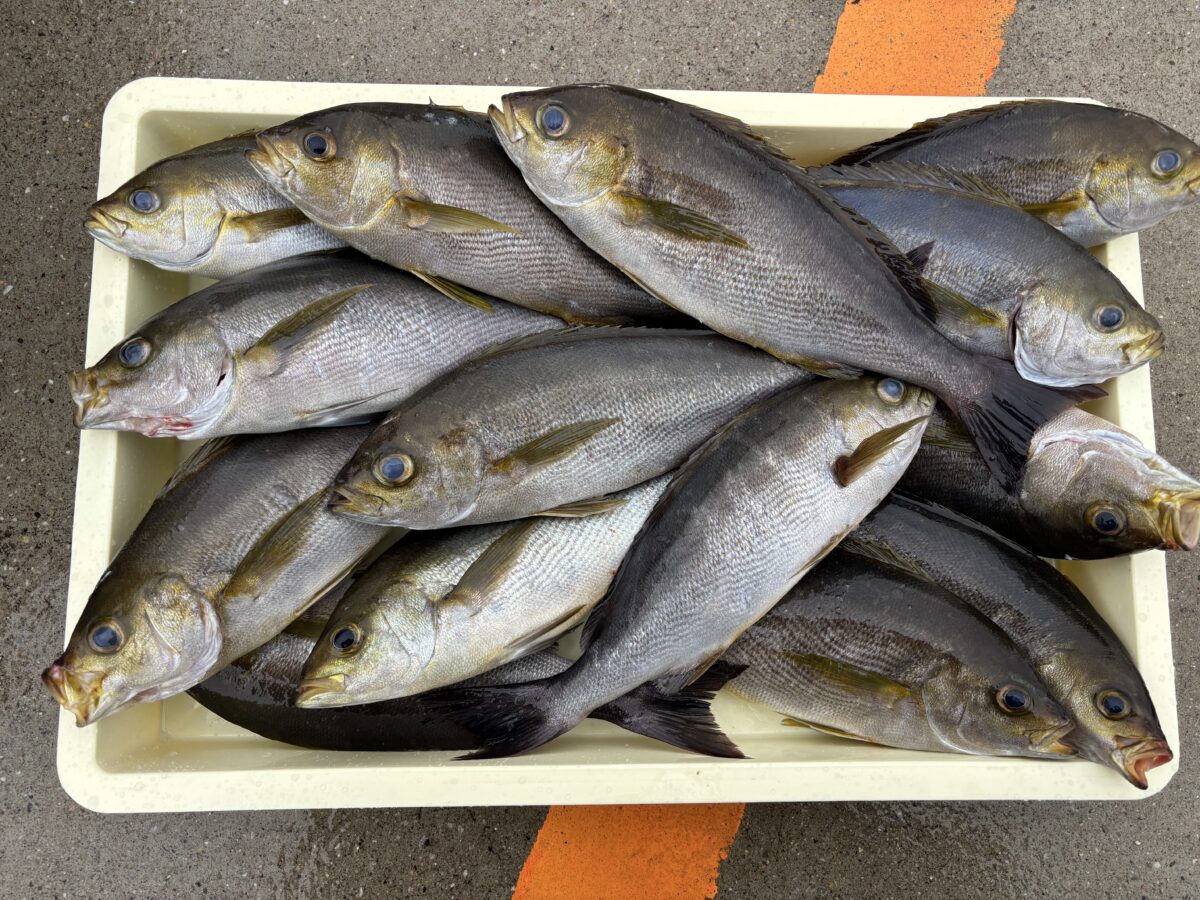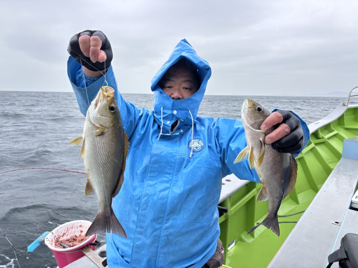大山沖イサキ釣り行ってきました!朝からコンスタントに釣れて山盛りゲット!幸先の良いスタートとなりました。