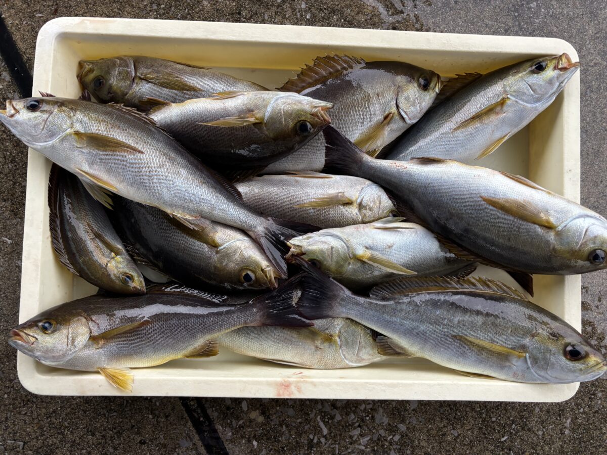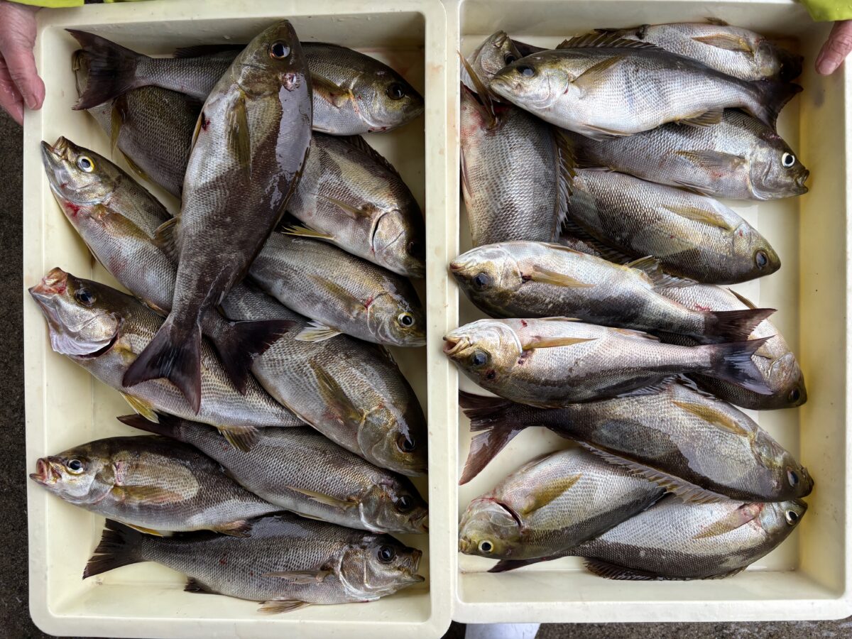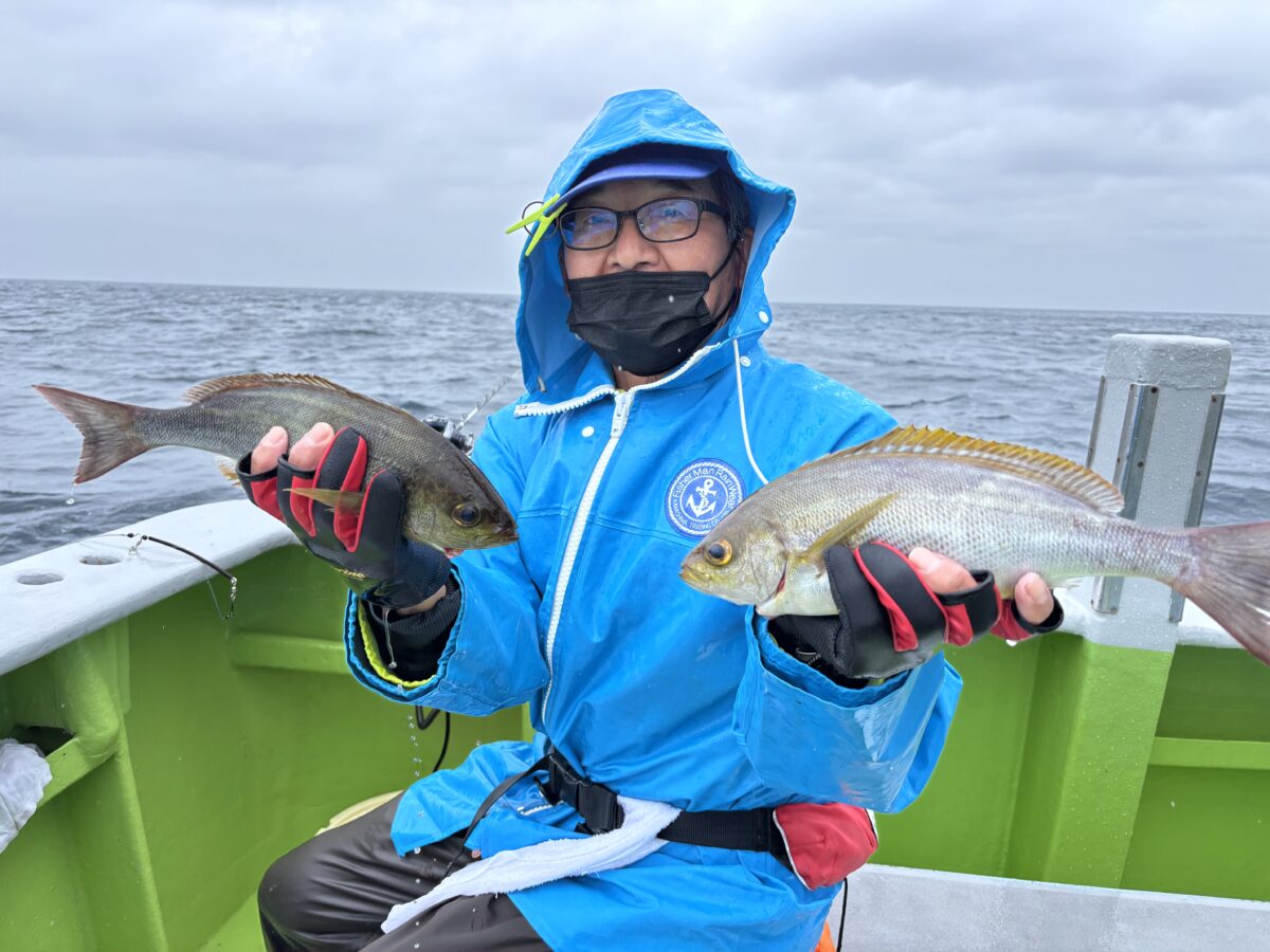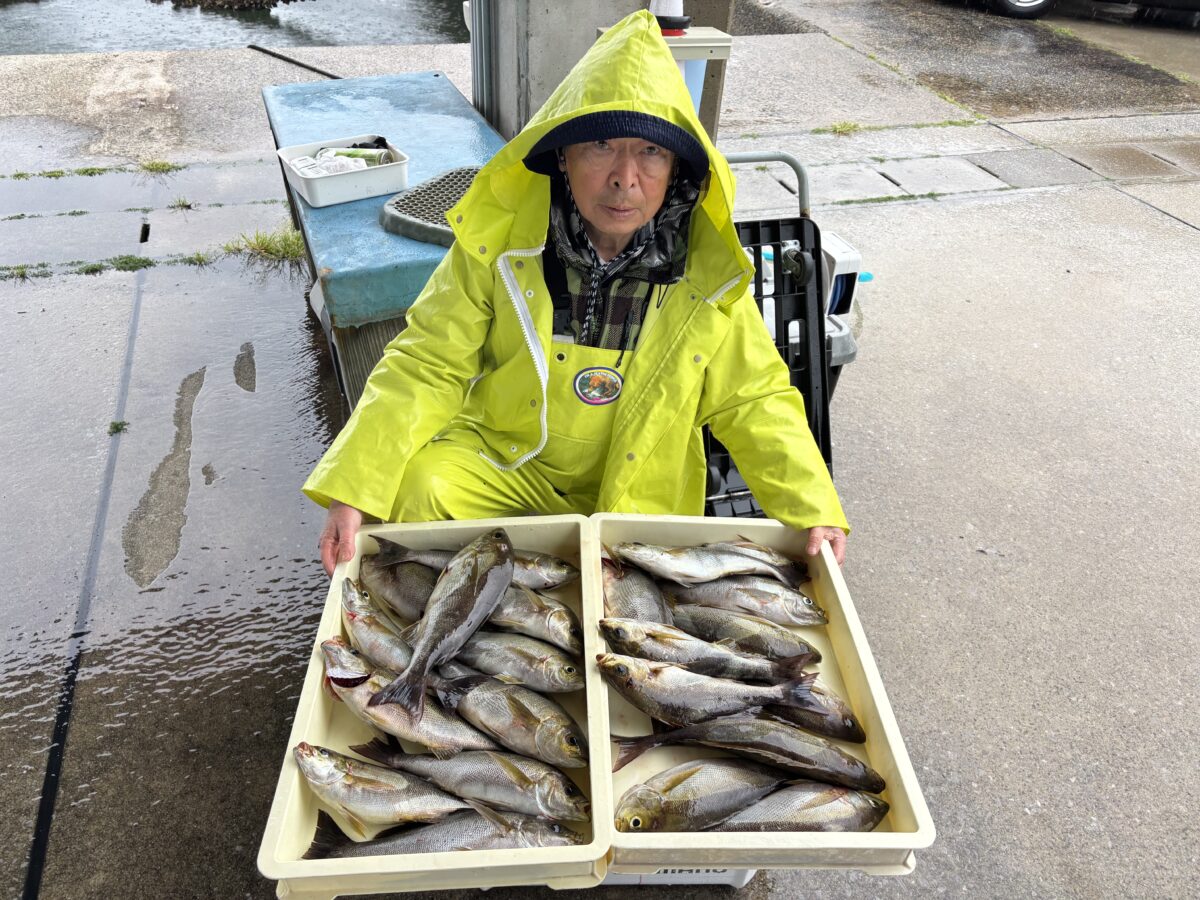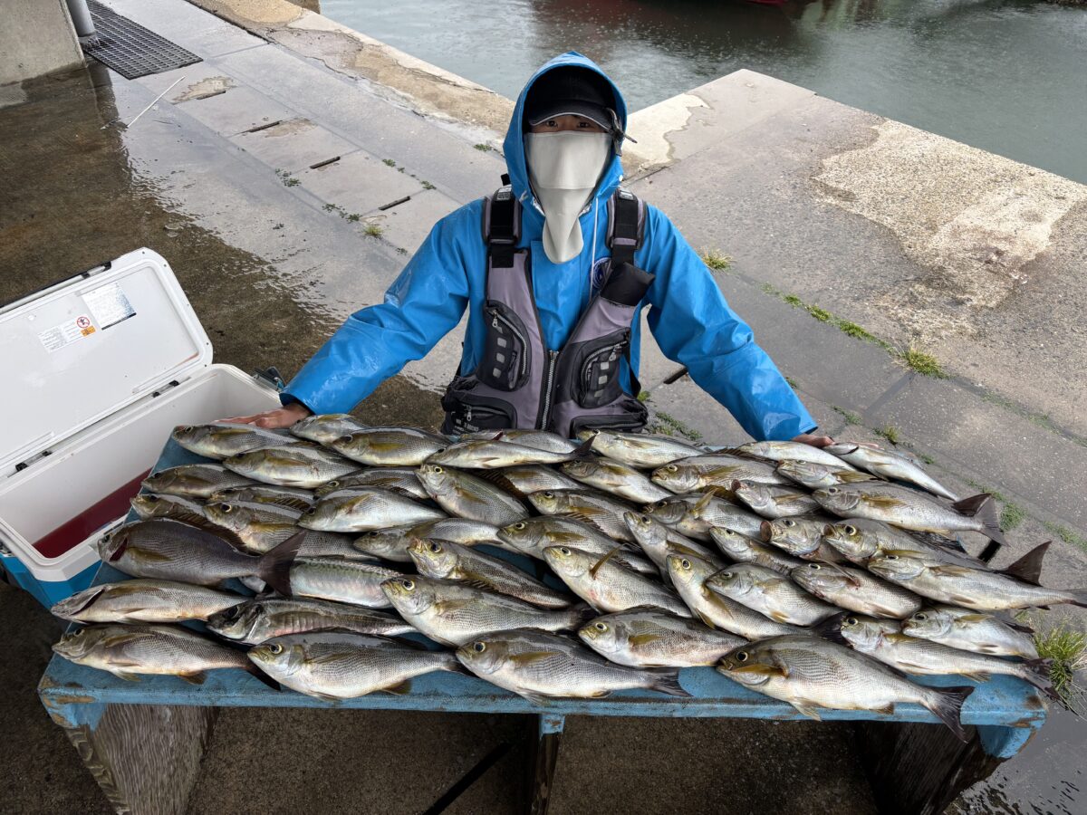 雨降りはイサキ日和~!朝からコンスタントに釣れて山盛りゲット!